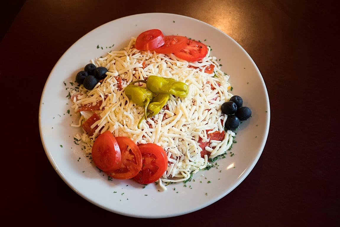 Blended lettuce, pepperoni, ham, mozzarella, tomato, black olives & pepperoncini.